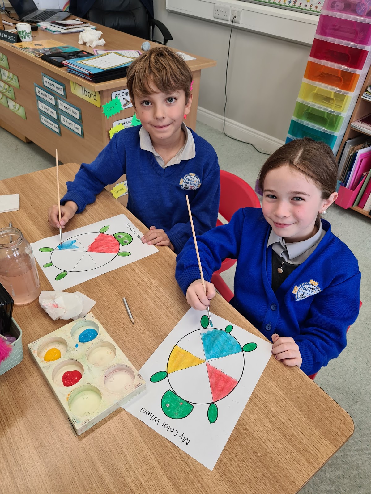 We have been learning all about mixing things together in second class recently. We experimented with mixing paint to make new colours and we had lots of fun creating colour wheels. We also decided to mix ingredients together to make tasty treats. Thanks to all the moms and dads for the help at home!